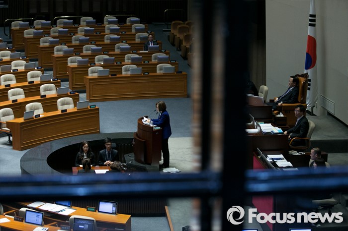 (서울=포커스뉴스) 테러방지법 직권상정에 반발해 야당의 무제한 토론(필리버스터)이 진행되고 있는 24일 오후 서울 여의도 국회 본회의장에서 토론에 참여한 은수미 더불어민주당 의원이 발언하고 있다. 은 의원은 이날 10시간 18분의 토론을 기록해 국내 최장기록인 10시간 15분을 경신했다.