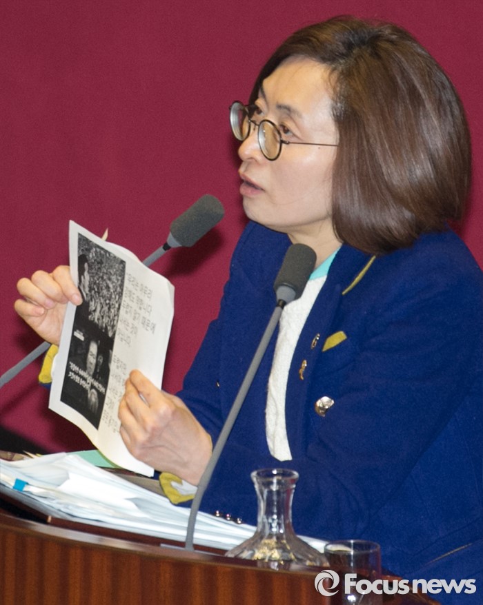 (서울=포커스뉴스) 테러방지법 직권상정에 반발해 야당의 무제한 토론(필리버스터)이 진행되고 있는 24일 오후 서울 여의도 국회 본회의장에서 토론에 참여한 은수미 더불어민주당 의원이 故 김대중 전 대통령의 연설물 관련 발언하고 있다. 은 의원은 이날 10시간 18분의 토론을 기록해 국내 최장기록인 10시간 15분을 경신했다.