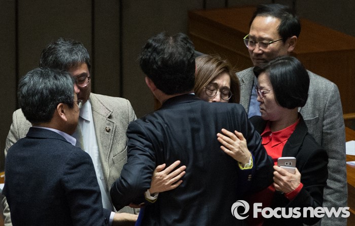 | △ 필리버스터 최장 기록, 동료들 격려 받으며 눈물짓는 은수미 |