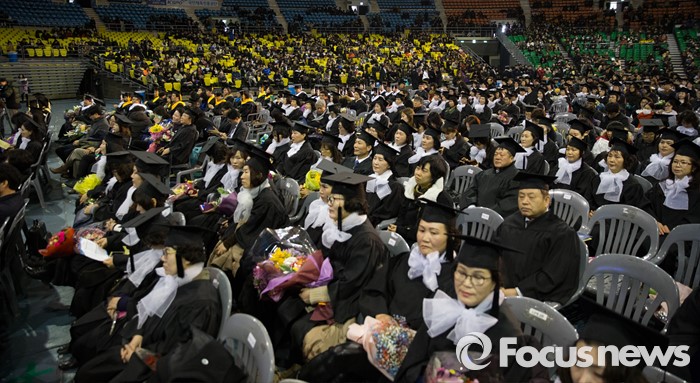 (서울=포커스뉴스) 24일 오후 서울 송파구 올림픽체조경기장에서 열린 '한국방송통신대학교 2015학년도 학위수여식'에 졸업생들이 참석하고 있다.