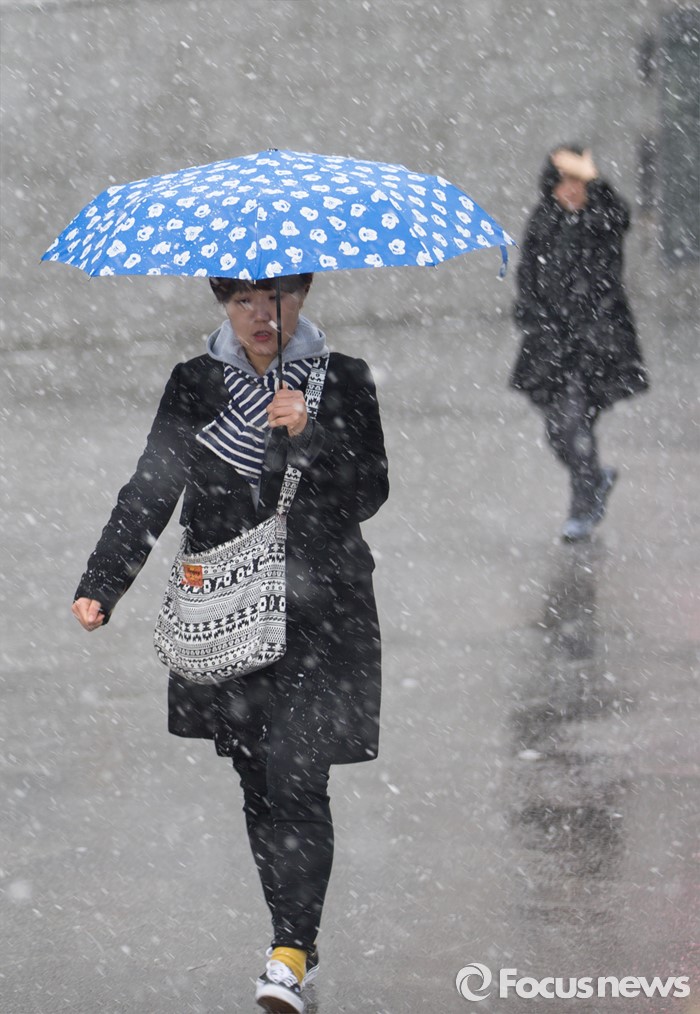 -3~1℃20~60%자료: 기상청서울과 중부지방에 눈이 내린 지난 16일 오후 서울 광화문광장에서 시민들이 눈을 맞으며 걸음을 재촉하고 있다. 오장환 기자