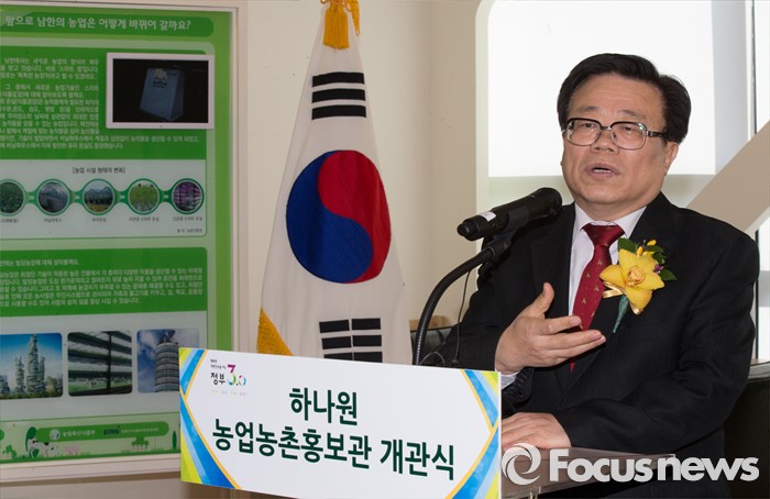 (안성=포커스뉴스) 24일 오후 경기 안성시 하나원에서 열린 하나원 농업·농촌 홍보관 개관식에서 이동필 농림축산식품부 장관 축사를 하고 있다.