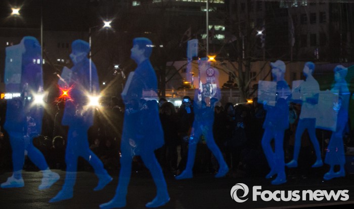(서울=포커스뉴스) 24일 오후 서울 광화문광장에서 3차원 영상(홀로그램)을 이용해 열린 '2ㆍ24 앰네스티 유령집회'에서 '집회ㆍ시위 자유를 보장하라'는 주제의 영상이 스크린에 영사되고 있다.