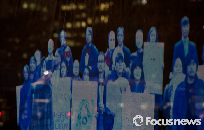 (서울=포커스뉴스) 24일 오후 서울 광화문광장에서 3차원 영상(홀로그램)을 이용해 열린 '2ㆍ24 앰네스티 유령집회'에서 '집회ㆍ시위 자유를 보장하라'는 주제의 영상이 스크린에 영사되고 있다.