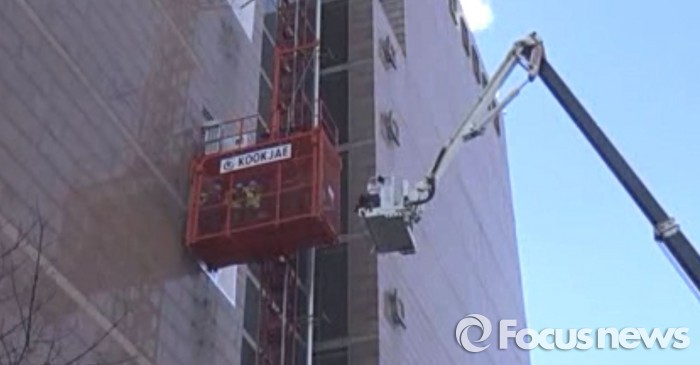 출동한 구조대원 2명이 굴절차로 승강기 안으로 진입해 승강기에 갇혀있던 작업자 19명을 안전하게 구조했다. 다행히 인명피해는 없었다.