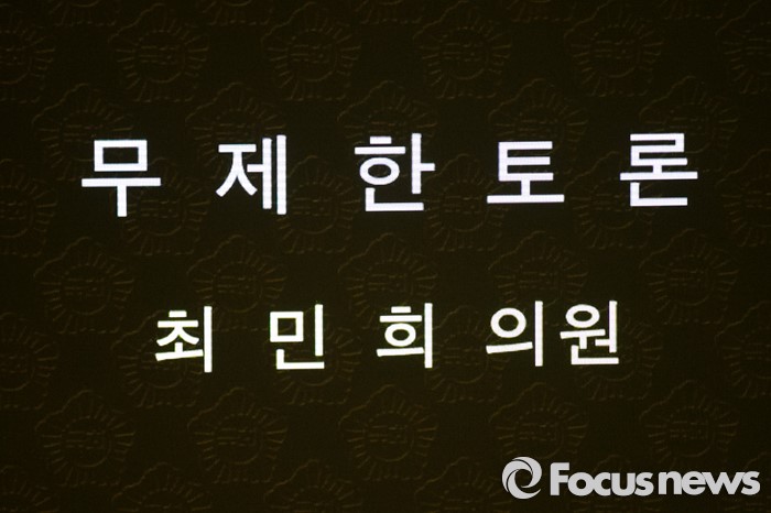 (서울=포커스뉴스) 최민희 더불어민주당 의원이 25일오전 서울 여의도 국회 본회의장에서 테러방지법 저지를 위한 무제한토론(필리버스터)을 하고 있다.