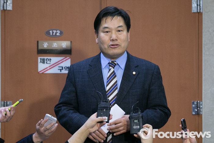 (서울=포커스뉴스) 1차 컷오프 대상자인 홍의락 더불어민주당 의원이 25일 오전 서울 여의도 국회 정론관에서 거취 표명 기자회견을 마치고 기자들의 질문에 답변하고 있다.