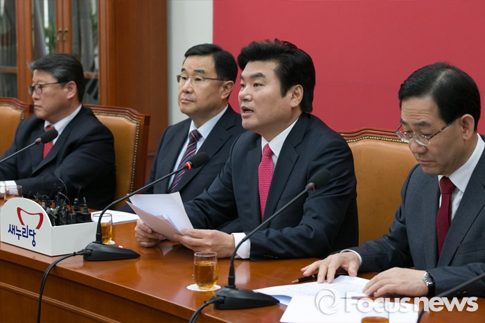 (서울=포커스뉴스) 원유철(오른쪽 두번째) 새누리당 원대대표가 25일 오전 서울 여의도 국회 집무실에서 테러방지법과 관련해, 특별 기자회견을 하고 있다.