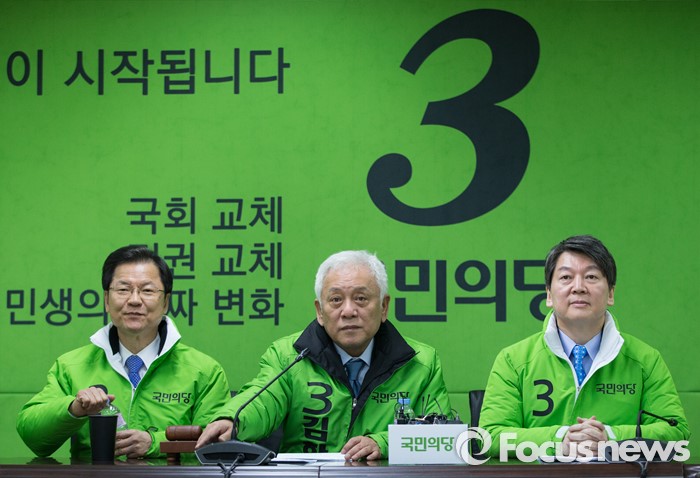 (서울=포커스뉴스) 국민의당 안철수, 천정배 상임공동대표를 비롯한 지도부가 25일 오전 서울 마포 당사에서 선거대책위원회 회의를 하고 있다. 오른쪽부터 안 대표, 김한길 공동선대위원장, 천 대표