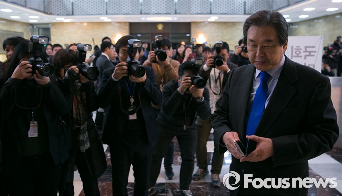 (서울=포커스뉴스) 테러방지법 직권상정에 반발해 야당의 무제한 토론(필리버스터)이 사흘째 진행되고 있는 25일 오전 서울 여의도 국회 본회의장 앞에서 무제한 토론 비판 시위를 마친 김무성 새누리당 대표가 회의장으로 향하고 있다.