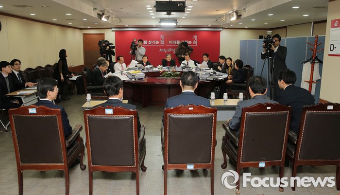 (서울=포커스뉴스) 25일 오전 서울 여의도 새누리당사에서 열린 20대 총선 공천 신청자 면접심사에 참석한 부산 사하을 예비후보들이 공관위원들의 질문에 답하고 있다.
