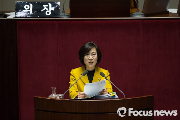(서울=포커스뉴스) 김제남 정의당 의원이 25일 오전 서울 여의도 국회 본회의장에서 테러방지법 저지를 위한 무제한 토론(필리버스터)을 하고 있다.