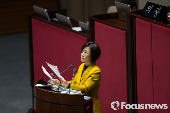 (서울=포커스뉴스) 김제남 정의당 의원이 25일 오전 서울 여의도 국회 본회의장에서 테러방지법 저지를 위한 무제한 토론(필리버스터)을 하고 있다.
