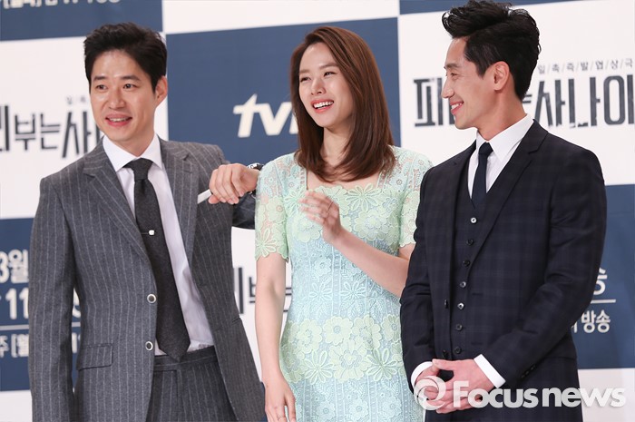 (서울=포커스뉴스) 25일 오후 서울 영등포구 타임스퀘어 아모리스홀에서 열린 tvN 월화드라마 '피리부는 사나이' 제작발표회에 참석한 배우 유준상(왼쪽부터), 조윤희, 신하균이 포토타임을 갖고 있다.