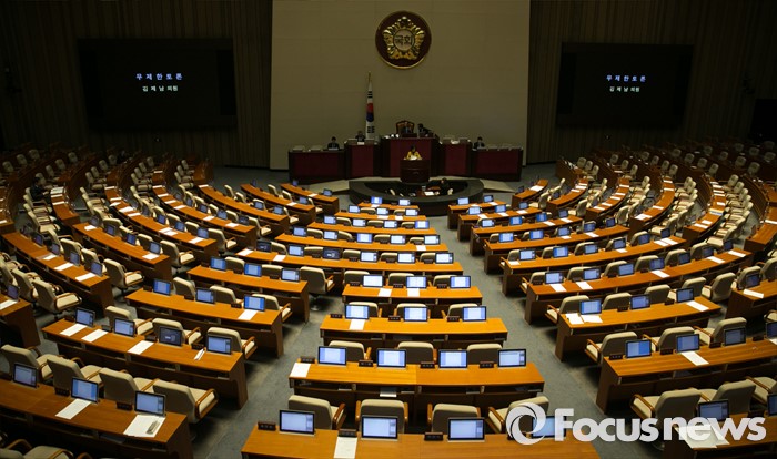 (서울=포커스뉴스) 테러방지법 직권상정에 반발해 야당의 무제한 토론(필리버스터)이 사흘째 진행되고 있는 25일 오후 서울 여의도 국회 본회의장에서 토론에 참여한 김제남 정의당 의원이 발언하고 있다.