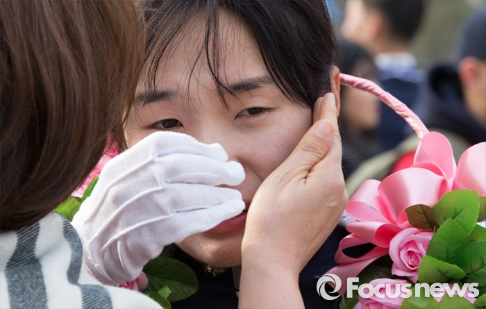 (청주=포커스뉴스) 25일 오후 충북 청주시 공군사관학교 연병장에서 열린 제64기 공군사관학교 졸업식에서 졸업생도가 눈물을 흘리고 있다.