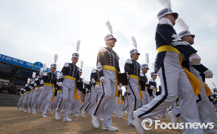(청주=포커스뉴스) 25일 오후 충북 청주시 공군사관학교 연병장에서 열린 제64기 공군사관학교 졸업식에서 졸업생도들이 행진하고 있다.