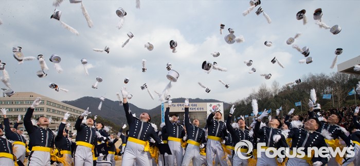 (청주=포커스뉴스) 25일 오후 충북 청주시 공군사관학교 연병장에서 열린 제64기 공군사관학교 졸업식에서 졸업생도들이 예모를 하늘 높이 던지고 있다.