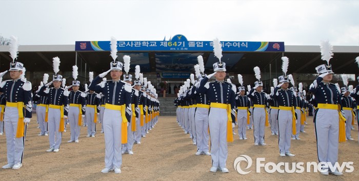 (청주=포커스뉴스) 25일 오후 충북 청주시 공군사관학교 연병장에서 열린 제64기 공군사관학교 졸업식에서 졸업생도들이 거수경례를 하고 있다.