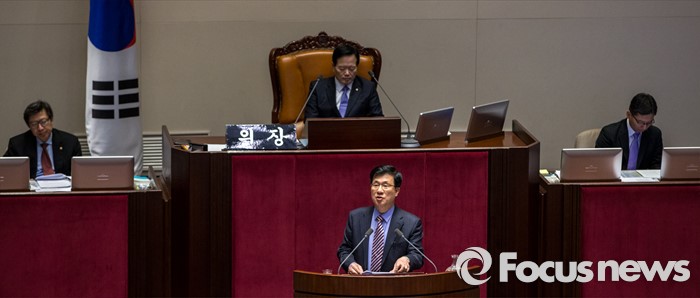(서울=포커스뉴스) 테러방지법 직권상정에 반발해 야당의 무제한 토론(필리버스터)이 사흘째 진행되고 있는 25일 오후 서울 영등포구 국회 본회의장에서 신경민 더불어민주당 의원이 발언을 하고 있다.