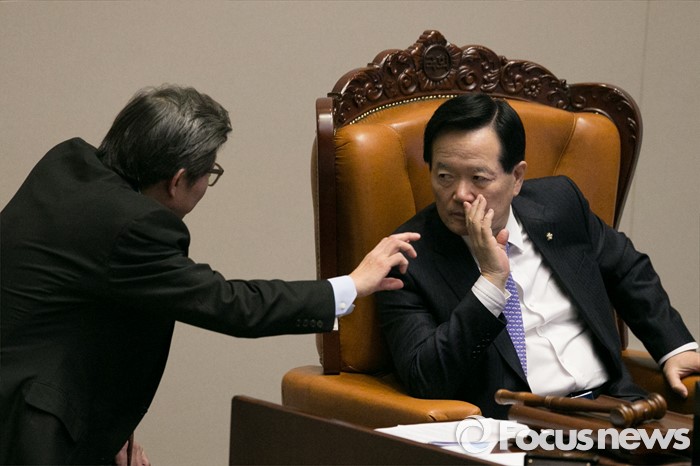 | △ 논의하는 국회의장과 사무총장 |