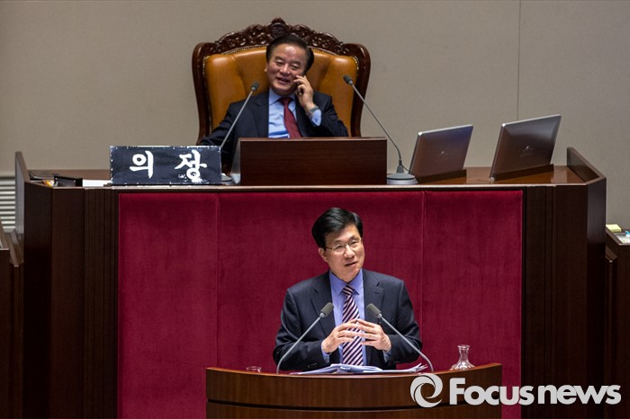 (서울=포커스뉴스) 테러방지법 직권상정에 반발해 야당의 무제한 토론(필리버스터)이 사흘째 진행되고 있는 25일 오후 서울 영등포구 국회 본회의장에서 신경민 더불어민주당 의원이 발언을 하고 있다.