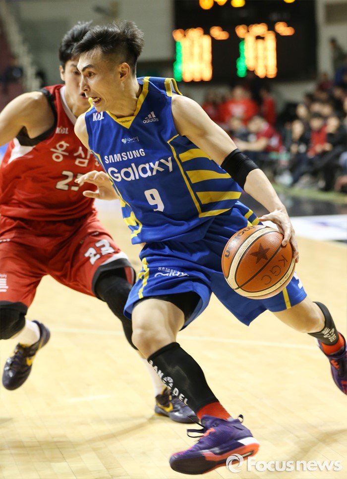 (안양=포커스뉴스) 25일 안양실내체육관에서 열린 2015-2016 프로농구 6강 플레이오프 KGC-삼성 1차전에서 삼성 주희정이 KGC 전성현을 제치며 골밑으로 대시하고 있다.