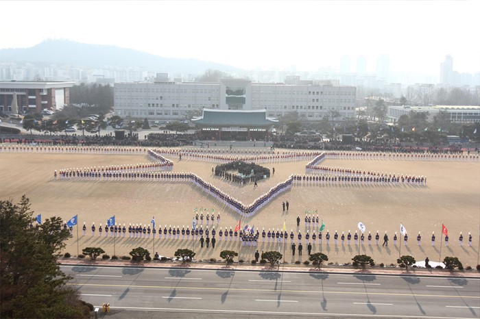 | △ 화랑대의 별 만드는 졸업생도들과 재교생도들 |