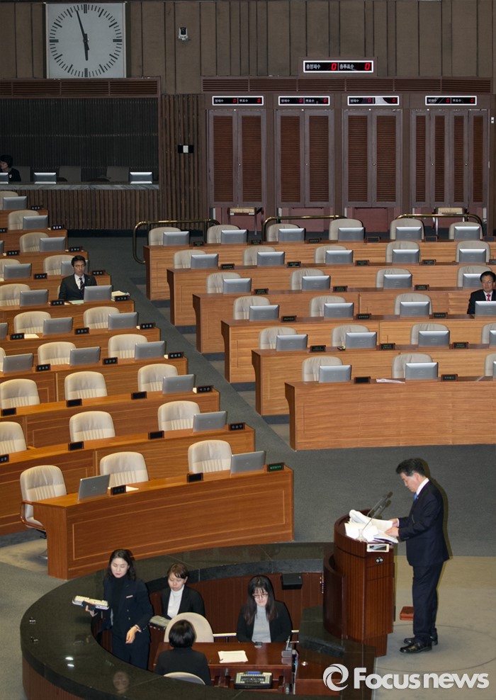 (서울=포커스뉴스) 테러방지법 직권상정에 반발해 야당의 무제한 토론(필리버스터)이 나흘째 진행되고 있는 26일 오전 서울 여의도 국회 본회의장에서 토론에 참여한 김경협 더불어민주당 의원이 발언하고 있다.