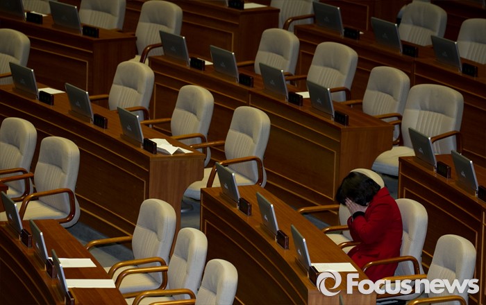 (서울=포커스뉴스) 테러방지법 직권상정에 반발해 야당의 무제한 토론(필리버스터)이 나흘째 진행되고 있는 26일 오전 서울 여의도 국회 본회의장에서 한 새누리당 의원이 피곤한 모습을 보이고 있다.
