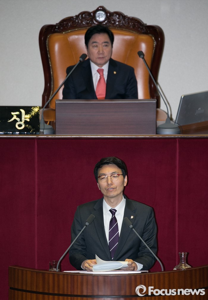 (서울=포커스뉴스) 테러방지법 직권상정에 반발해 야당의 무제한 토론(필리버스터)이 나흘째 진행되고 있는 26일 오전 서울 여의도 국회 본회의장에서 토론에 참여한 서기호 정의당 의원이 발언하고 있다.