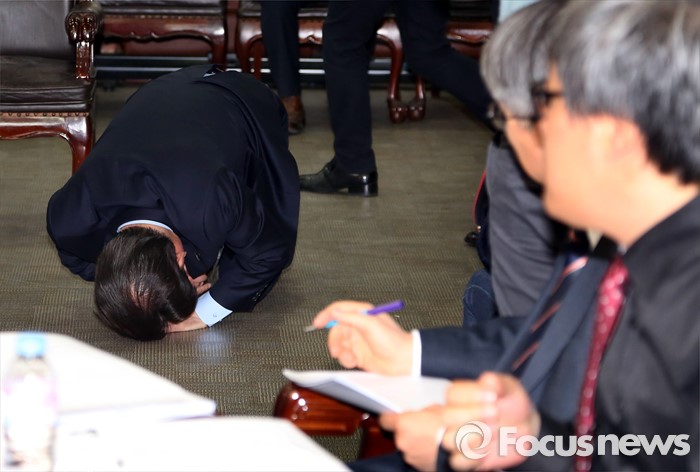 (서울=포커스뉴스) 26일 오전 서울 여의도 새누리당사에서 열린 20대 총선 공천 신청자 면접심사에 참석한 손종익 대구 동구갑 예비후보가 공관위원들을 향해 절을 하고 있다.