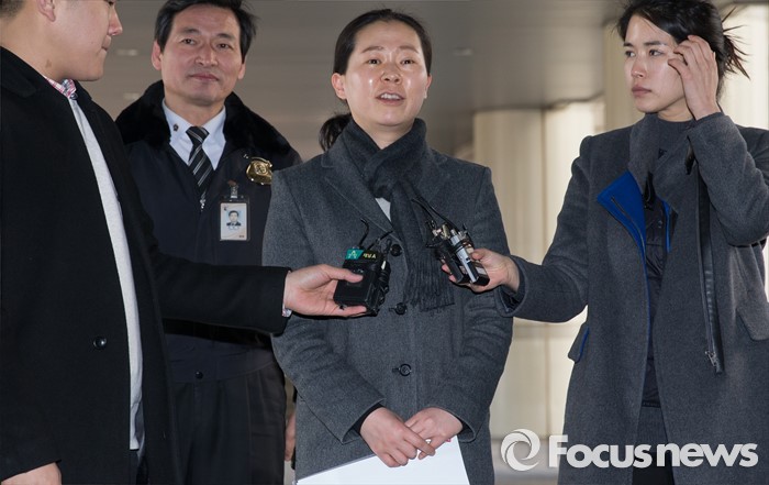 (서울=포커스뉴스) '국정원 대선개입 댓글사건' 재판에서 거짓증언을 한 혐의(모해위증)를 받고 있는 권은희 국민의당 의원의 1차 공판기일인 26일 오후 서울 서초구 서울중앙지방법원으로 권 의원이 들어서던 중 취재진의 질문에 답변을 하고 있다.