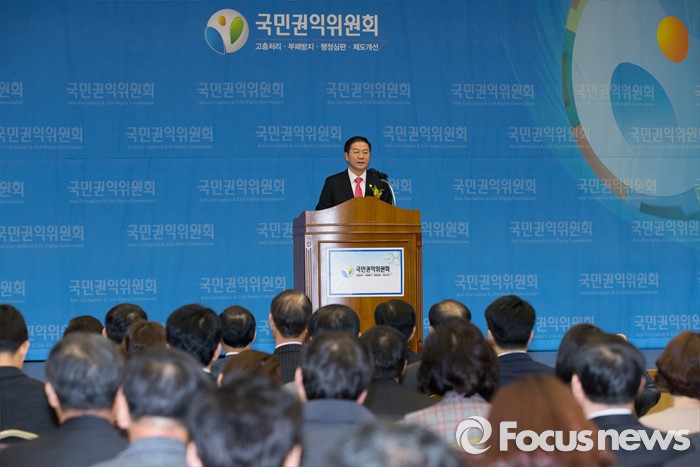 (세종=포커스뉴스) 26일 오후 세종시 정부세종컨벤션센터에서 열린 제4회 국민권익의 날 기념식에서 성영훈 국민권익위원장이 기념사를 하고 있다.