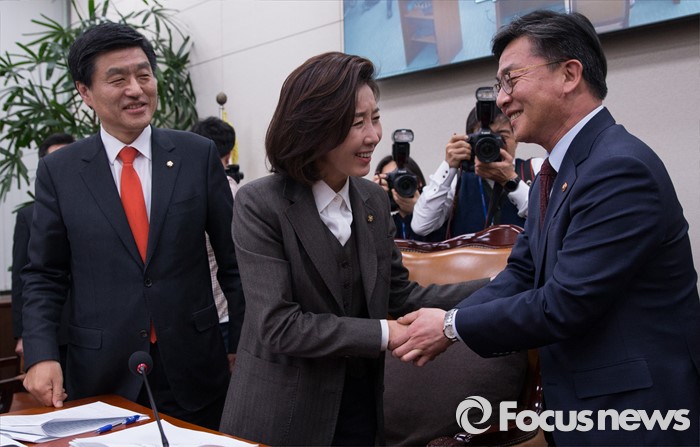 | △ 북한 인권법 의결, 악수하는 나경원과 홍용표 |