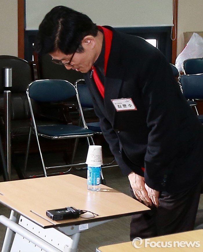 (서울=포커스뉴스) 26일 오후 서울 여의도 새누리당사에서 열린 20대 총선 공천 신청자 면접심사에 참석한 김문수 대구 수성갑 예비후보가 인사하고 있다.