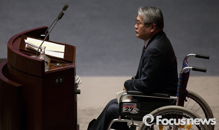 | △ 휠체어 타고 13번째 필리버스터 주자로 나선 김용익 의원 |