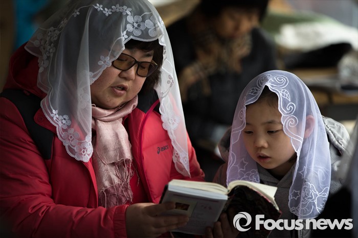 (서귀포=포커스뉴스) 강정마을의 한 모녀가 26일 준공식이 열리는 제주민군복합형관광미항(제주해군기지) 정문 앞 부근에서 기지 건설을 반대하며 기도를 하고 있다.