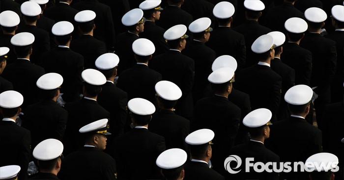 (서귀포=포커스뉴스) 26일 오후 제주 서귀포 제주해군기지에서 열린 '제주민군복합형관광미항' 준공식에 해군 장병들이 도열해 있다.