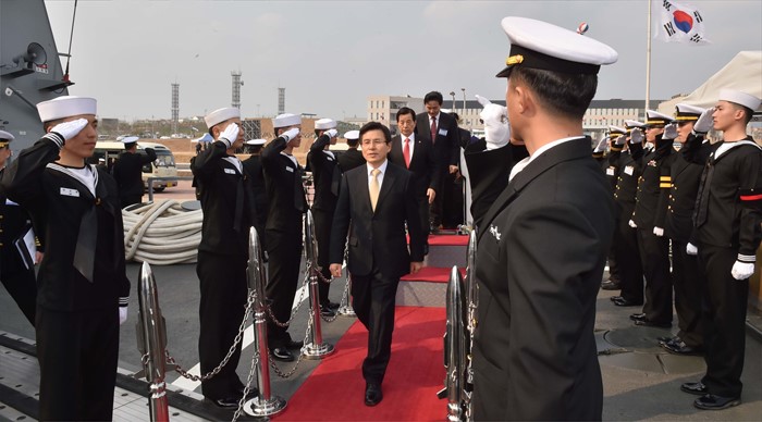 이지스구축함 서애류성룡함 승선하는 황교안 국무총리