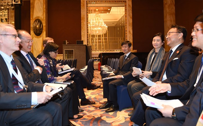 (서울=포커스뉴스) G20재무장관·중앙은행총재회의 참석차 중국 상해를 방문중인 유일호 경제부총리 겸 기획재정부 장관이 26일 오후(현지시간) 푸동 상글리라 호텔에서 김용 세계은행(WB) 총재와 면담을 갖고 있다. <사진제공=기획재정부>