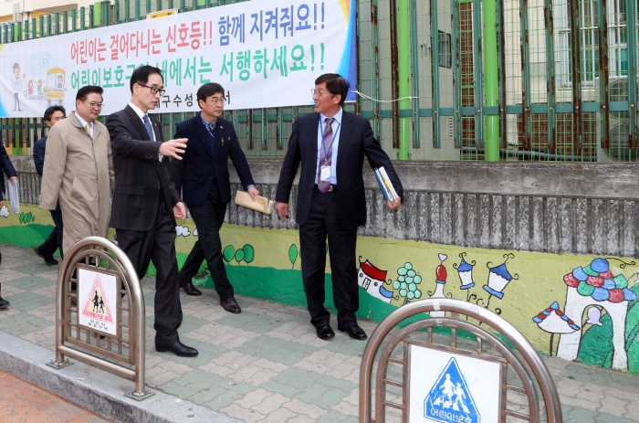 (대구=포커스뉴스) 이준식 부총리 겸 교육부장관이 26일 대구 수성구 동천초등학교를 방문, 신학기 대비 안전점검을 하고 있다. <사진제공=교육부>