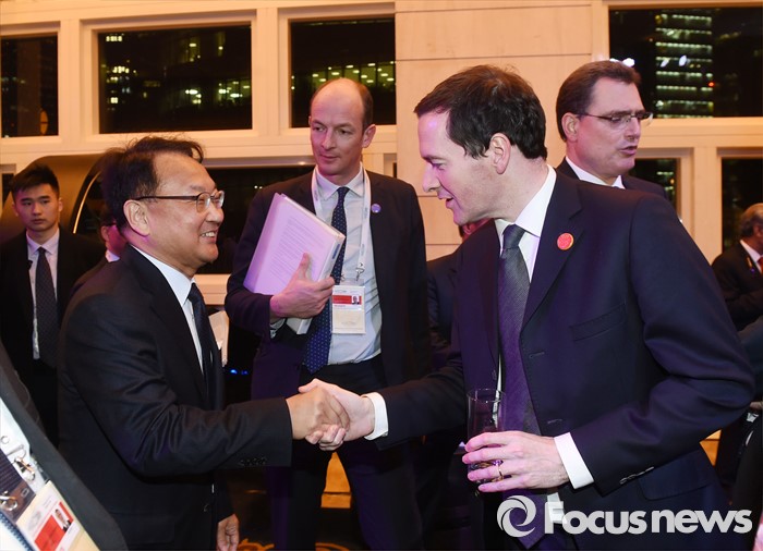 | △ 조지 오스본 영국 재무장관과 인사 나누는 유일호 부총리 |