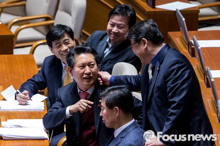 정 의원은 "국회의장석은 의장단 3명만 앉을 수 있다"며 "지금 김 위원장이 앉아있다. 처음 있는 일"이라고 말했다.