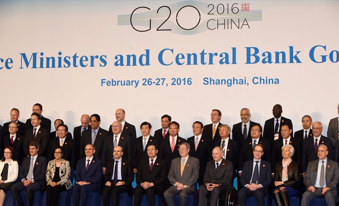 (서울=포커스뉴스) 유일호 부총리 겸 기획재정부 장관이 27일 중국 상해 푸동 상글리라 호텔에서 열린 G20재무장관.중앙은행총재회의 참석, 각국 참석자들과 기념쵤영을 하고 있다. <사진제공=기획재정부>