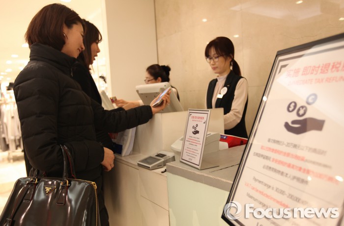 롯데백화점은 즉시환급 서비스 전점 도입을 통해 외국인 관광객 매출이 증가할 것으로 기대하고 있다.