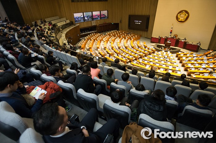 (서울=포커스뉴스) 테러방지법 직권상정에 반발해 야당의 무제한 토론(필리버스터)이 진행되고 있는 28일 오후 서울 여의도 국회 본회의 장에서 23번째 토론에 참여한 이학영 더불어민주당 의원이 발언하고 있는 가운데 시민 방청객들이 지켜보고 있다.