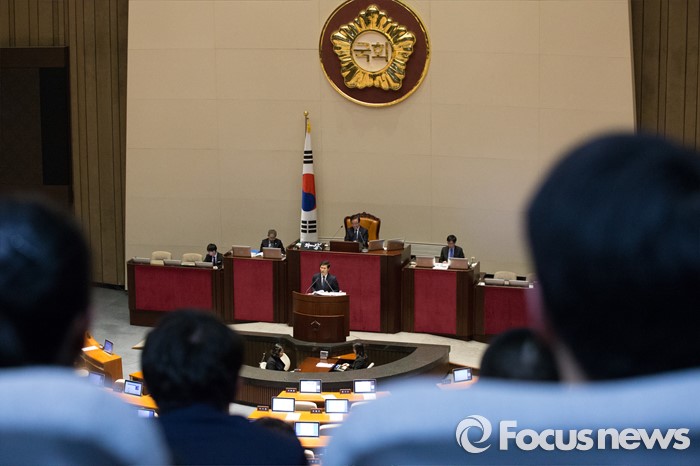 (서울=포커스뉴스) 테러방지법 직권상정에 반발해 야당의 무제한 토론(필리버스터)이 진행되고 있는 28일 오후 서울 여의도 국회 본회의 장에서 23번째 토론에 참여한 이학영 더불어민주당 의원이 발언하고 있는 가운데 시민 방청객들이 지켜보고 있다.