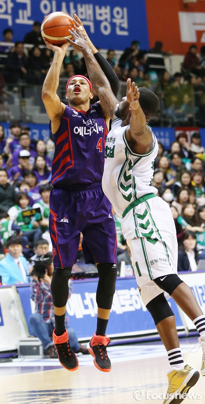 (고양=포커스뉴스) 28일 고양체육관에서 열린 2015-2016 프로농구 오리온-동부 6강 플레이오프 2차전에서 오리온 문태종이 동부 맥키네스의 마크 위로 3점 슛을 쏘고 있다.