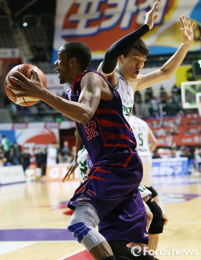(고양=포커스뉴스) 28일 고양체육관에서 열린 2015-2016 프로농구 오리온-동부 6강 플레이오프 2차전에서 오리온 애런 헤인즈가 동부 김주성의 마크를 피해 골밑 돌파를 시도하고 있다.